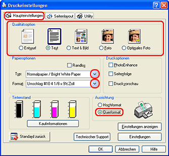 ![]() | Druckersoftware für Windows aufrufen |