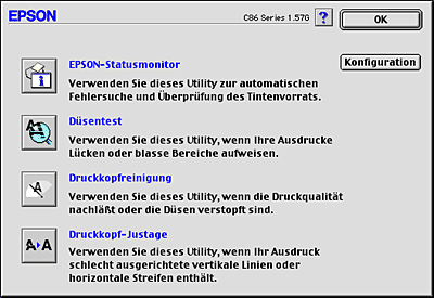 Mit den EPSON Drucker-Utilitys können Sie den aktuellen Druckerstatus prüfen und bestimmte Funktionen des Druckers vom Computer aus warten.