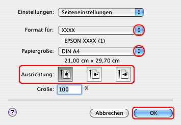 Wählen Sie die geeignete Formateinstellung. Sie können auch ein eigenes Papierformat definieren. Nähere Informationen finden Sie in der Online-Hilfe.