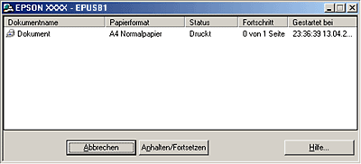 Der EPSON Spool Manager ähnelt dem Windows-Druckmanager. Gehen mehrere Druckaufträge gleichzeitig ein, werden sie aneinander gereiht (bei Netzwerkdruckern wird dies als Druck-Warteschlange bezeichnet). Erreicht ein Druckauftrag den Anfang der Warteschlange, wird er vom EPSON Spool Manager zum Drucker übertragen.