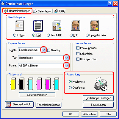Klicken Sie auf die Registerkarte Haupteinstellungen und wählen Sie anschließend eine der folgenden Qualitätsoptionen: