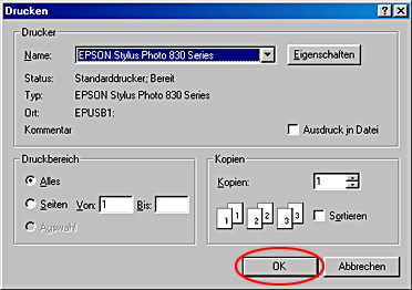 Klicken Sie auf OK, um den Druckvorgang zu starten.