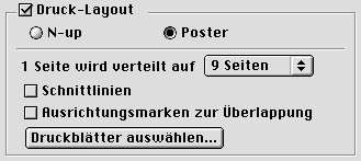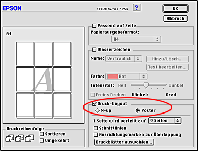 Markieren Sie das Kontrollkästchen Druck-Layout im Dialogfenster Layout und wählen Sie Poster.