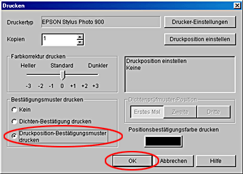 Wählen Sie Druckposition-Bestätigungsmuster drucken für Bestätigungsmuster drucken und klicken Sie dann auf OK.