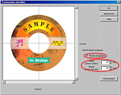 Einstellung der Druckposition