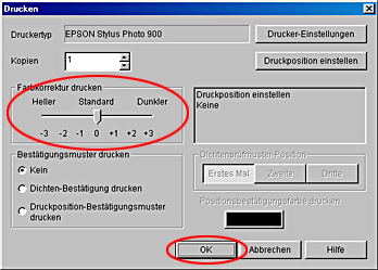 Die Messwerte in EPSON Print CD eingeben
