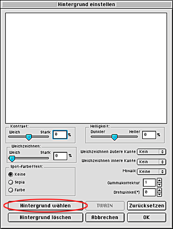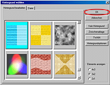 Klicken Sie auf das Symbol links in der Symbolleiste Bearbeiten. Das Dialogfeld Hintergrund wählen wird eingeblendet.