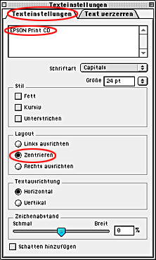 Sie können die Schriftart, die Größe und den Stil der Zeichen im Dialogfenster Texteinstellungen ändern.