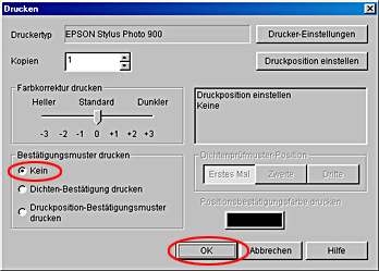 Wählen Sie Kein für Bestätigungsmuster drucken und klicken Sie dann auf OK.