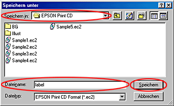 Zum Speichern der Labeldaten wählen Sie einen Ordner, geben Sie einen Dateinamen ein und klicken Sie auf die Schaltfläche Sichern.