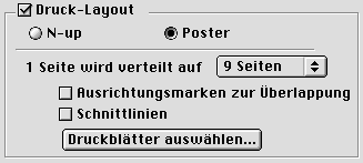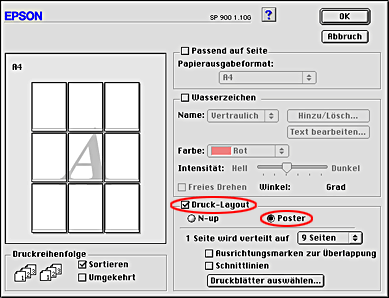 Markieren Sie das Kontrollkästchen Druck-Layout im Dialogfenster Layout und wählen Sie dann Poster.