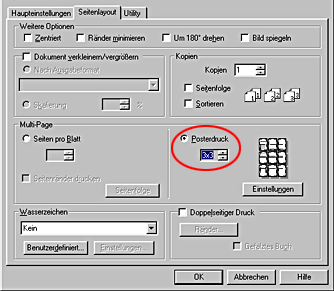 Nehmen Sie die nachstehenden Einstellungen für den Posterdruck vor.