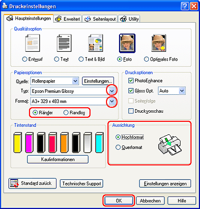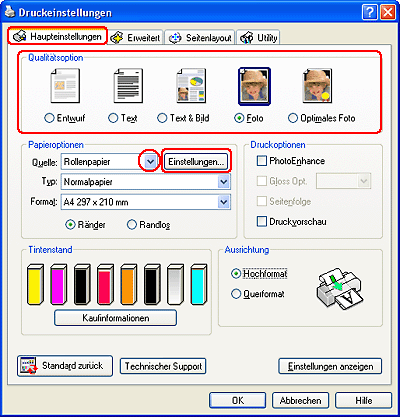Drucken auf RollenpapierMit Rollenpapier können Sie Banner, Fotoserien oder Panoramafotos drucken.