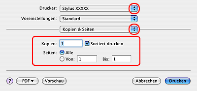 Druckereinstellungen für Mac OS XZur Anpassung der Druckereinstellungen führen Sie die folgenden Schritte aus.