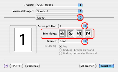 Hier können Sie die Reihenfolge festlegen, in der die Seiten auf das Einzelblatt gedruckt werden.