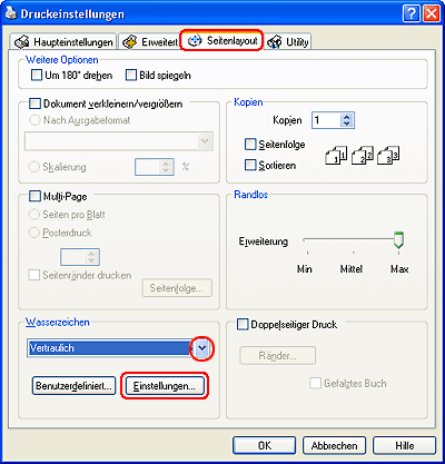 Drucken von Wasserzeichen (nur Windows)