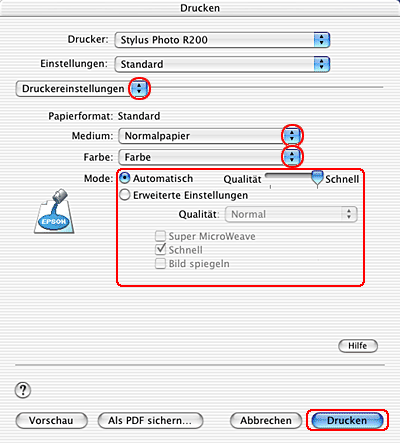 ![]() | Druckersoftware unter MacOS 8.6 bis 9.x aufrufen |