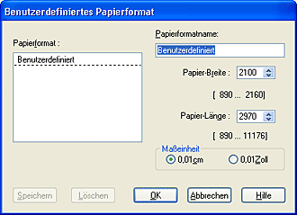 ![]() | Geben Sie einen Namen für das Papierformat in das Feld Papierformatname ein. |