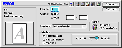 Wenn Automatisch gewählt ist, werden alle weiteren Einstellungen auf der Basis der aktuellen Einstellungen für Medium und Farbe von der Druckersoftware vorgenommen.