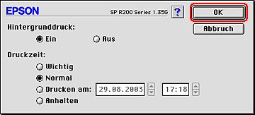![]() | Wählen Sie entsprechend die Einstellung Wichtig, Normal, Drucken am oder Anhalten als Druckzeitoption aus. |