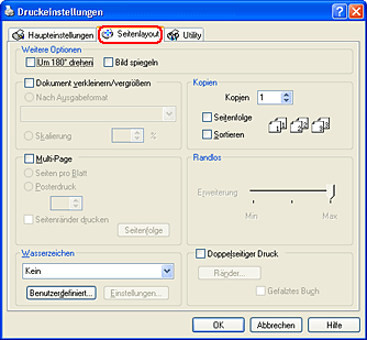 Einstellungen auf der Registerkarte Seitenlayout vornehmen