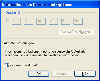 Die im Dialogfeld Drucker- und Optionen-Informationen angezeigten Informationen werden abhängig von der Systemkonfiguration automatisch aktualisiert oder müssen manuell eingegeben werden.