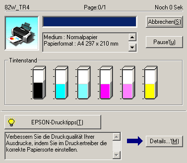 Mit Hilfe des Fortschrittsbalkens oder des EPSON Spool Managers ist es möglich, den laufenden Druckauftrag abzubrechen. Näheres finden Sie jeweils im entsprechenden Abschnitt weiter unten.