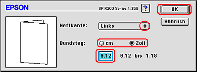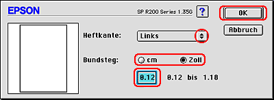 Legen Sie die Breite des Bindungsrands im Textfeld fest. Sie können eine beliebige Breite zwischen 0,12 und 1,18 Zoll bzw. 0,3 und 3,0 cm eingeben.