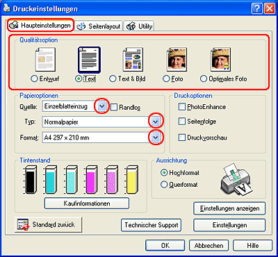 Klicken Sie auf die Registerkarte Haupteinstellungen und nehmen Sie die Einstellungen für Qualitätsoptionen vor. Hinweise zu den Einstellungen für Qualitätsoptionen finden Sie im folgenden Abschnitt.