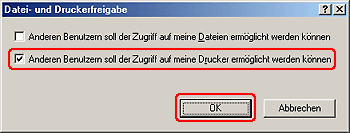 Aktivieren Sie das Kontrollkästchen Anderen Benutzern soll der Zugriff auf meine Drucker ermöglicht werden können, und klicken Sie anschließend auf OK.