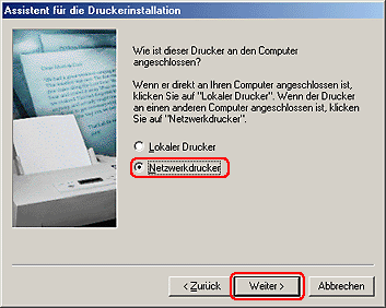 Wählen Sie Netzwerkdrucker und klicken Sie auf Weiter.