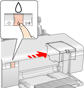 Drücken Sie die Taste  Tinte. Der Druckkopf bewegt sich in die Tintenpatronen-Austauschposition und die  Stromanzeige beginnt zu blinken.
