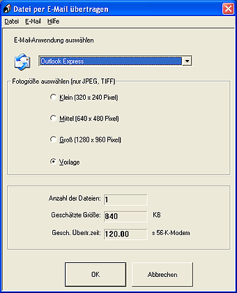 EPSON Attach To Email dient zum Übertragen von E-Mails mit Bildern. Das Programm unterstützt verschiedene E-Mail-Systeme und ermöglicht es, Bilder vor dem Anfügen an eine E-Mail in der Größe zu ändern.