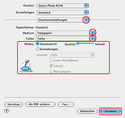 Druckereinstellungen für Mac OS X