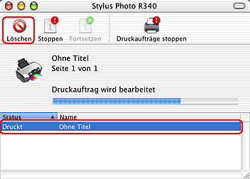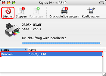 Klicken Sie auf die Schaltfläche Löschen, um den Druckauftrag abzubrechen.