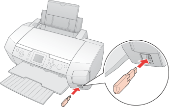 Schließen Sie den Adapter nicht an, während der Drucker in Betrieb ist. Anderenfalls können Fehlfunktionen des Druckers verursacht werden.