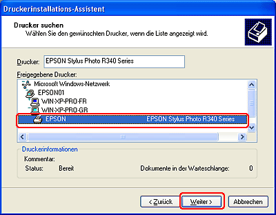 Der Drucker muss auf dem Computer, an den er angeschlossen ist, erst als freigegebener Drucker eingerichtet sein, bevor er von anderen Computern angesteuert werden kann.