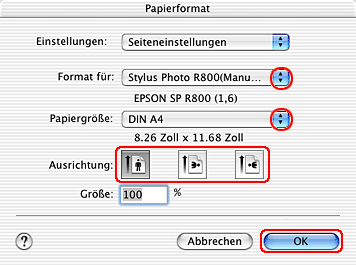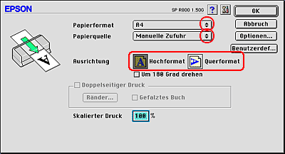 Wählen Sie Stylus Photo R800 (Manueller Einzug) als Einstellung für Format für.