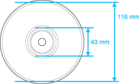 Der bedruckbare Bereich einer CD/DVD ist nachstehend angegeben.