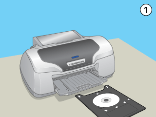 Mit EPSON Print CD, das diesem Drucker beiliegt, können Sie CD/DVD-Label erstellen. Nach dem Erstellen der Daten für das CD/DVD-Label können Sie mit diesem Drucker 12-cm-CDs/DVDs und 8-cm-CDs/DVDs bedrucken. Gehen Sie folgendermaßen vor, um CDs/DVDs zu bedrucken.