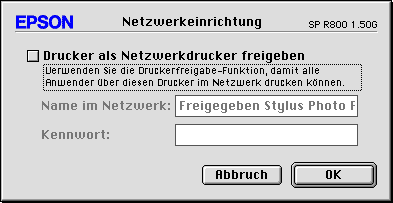 Verwenden Sie die Einstellung Druckerfreigabe, die eine Standardfunktion von Mac OS X 10.2 oder höher ist. Diese Option ist unter Mac OS X 10.1 nicht verfügbar. Nähere Informationen erhalten sie in der Dokumentation zum Betriebssystem.