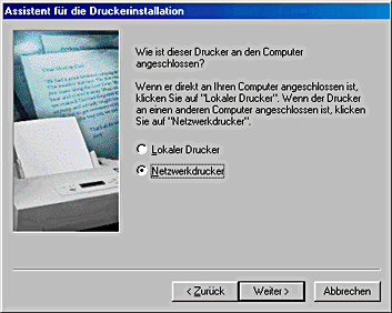 Wählen Sie Netzwerkdrucker aus und klicken Sie anschließend auf Weiter.