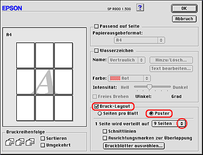 Aktivieren Sie das Kontrollkästchen Multi-Page im Dialogfenster Layout und wählen Sie dann Posteraus.