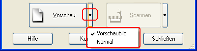 Sie können eine Vorschaumethode wählen: Miniaturen-Vorschau oder Normal-Vorschau. Klicken Sie auf den kleinen Pfeil rechts neben der Schaltfläche Vorschau und wählen Sie dann Miniaturansicht oder Normal aus.
