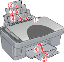 Schließen Sie die Papierstütze, die Papierfach-Schutzblende und das Papierausgabefach.