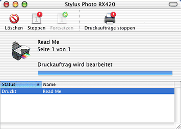 Nachdem Sie einen Druckauftrag erteilt haben, erscheint in der Taskleiste eine Schaltfläche EPSON Stylus Photo RX420 Series. Klicken Sie auf dieses Symbol, um den EPSON Spool Manager zu öffnen.