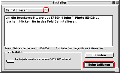 ![]() | Wählen Sie aus dem Pulldown-Menü oben links die Option Deinstallieren aus und klicken Sie dann auf Deinstallieren. |