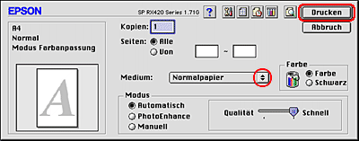Unter Mac OS 9 auf die Druckersoftware zugreifen