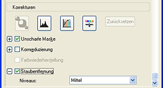 Staub entfernen ist eine Funktion der Scanner-Software, mit der auf Filmen vorhandener Staub entfernt werden kann.