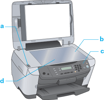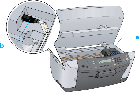 a. Arretierbügel der Tintenpatronen: Halten die Tintenpatrone an ihrem Platz.